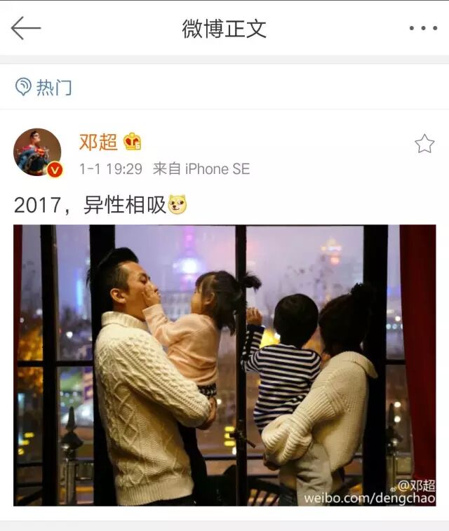 说起娱乐圈的恩爱模范夫妻,最先想起的就是邓超和孙俪、黄磊跟孙莉……经常被他们的微博日常虐到不行。这不,2017年邓超又出来秀恩爱了!发微博称文:“2017,异性相吸!”幽默风趣的词语,再配上温馨有爱的图片,简直是羡煞旁人!