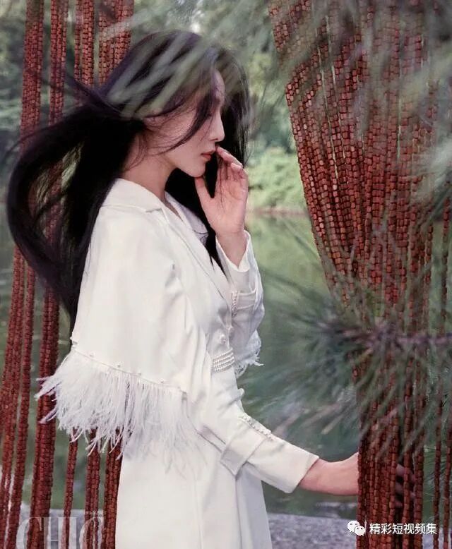 在白色流苏帷幕的衬托下,范冰冰的纯白之美变得更加朦胧,只不过从这个角度来看,范冰冰的表情还不够自然,有一点下唇包上唇的感觉。