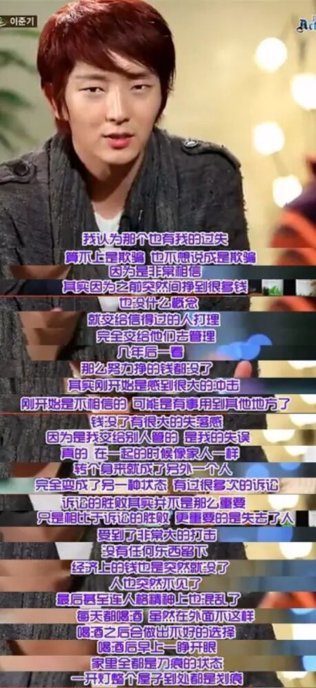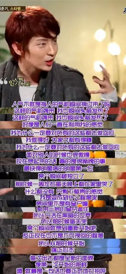 当然,发福不是为了走实力派路线,本来颧骨高胖了就会特别明显,又遭遇了事业上最大的打击,被公司坑,被经纪人坑,几乎落到倾家荡产的地步,搁谁都受不了。很长一段时间,李准基陷入抑郁期,甚至产生过自杀的念头,多亏了父母和朋友的支持才挺了过来。
