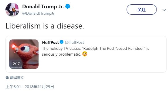 美国总统特朗普的长子小唐纳德·特朗普(Donald Trump Jr.)也驳斥了赫芬顿邮报的观点,认为赫芬顿邮报剪辑的视频是自由主义者毫无根据的攻击,他发推特说:
