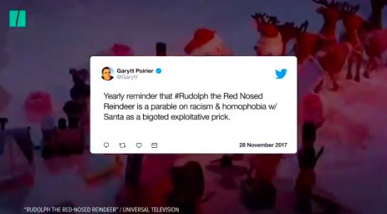 “每年,这部影片都在提醒人们,这是一个有着种族偏见和恐同的寓言,而圣诞老人是一个心胸狭窄的剥削者。”