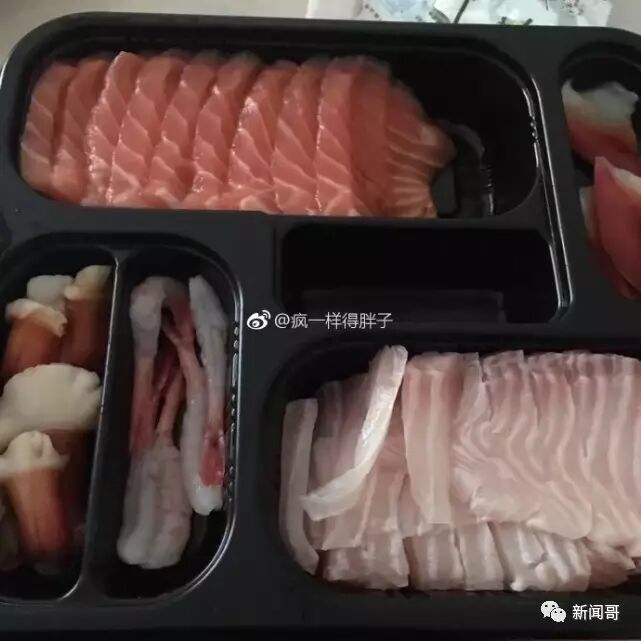 有个妹纸想吃刺身,男朋友给订了一盒:(图via @喵心星)