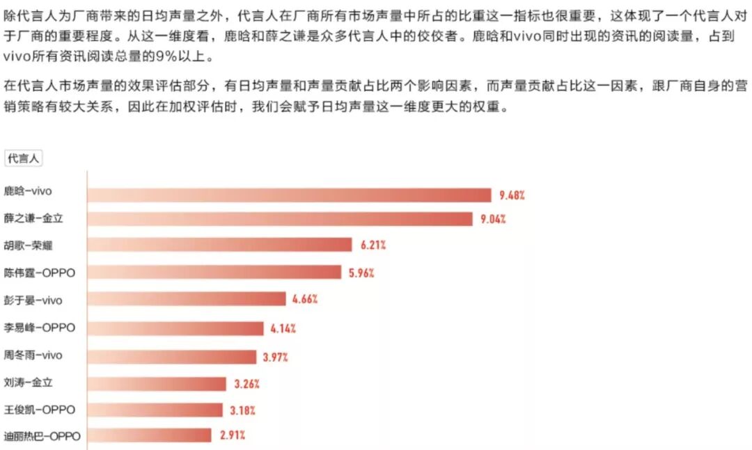 在今日头条的《2017年手机行业白皮书》中也会发现,鹿晗为厂商带来的日军声量也是最高的。这个点对vivo来说,可能是最大的吸引力。