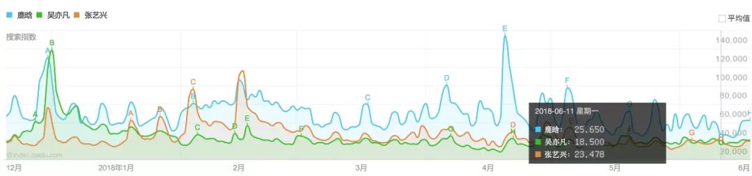 vivo则是看中了鹿晗的流量效应。事实上,拉开百度指数就会发现,鹿晗从绝对流量来看,始终比张艺兴、吴亦凡要高。