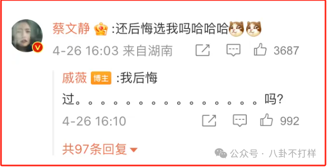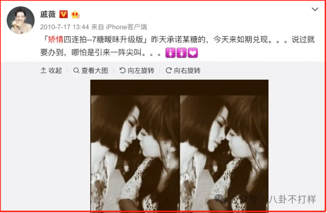 好嘛,在吃完“好妻子”的红利之后,知道网友们现在爱看、爱磕什么,戚薇又开始从直女变成了姬圈大佬的人设。算盘打的是蛮响的,既要又要,两手都要抓。