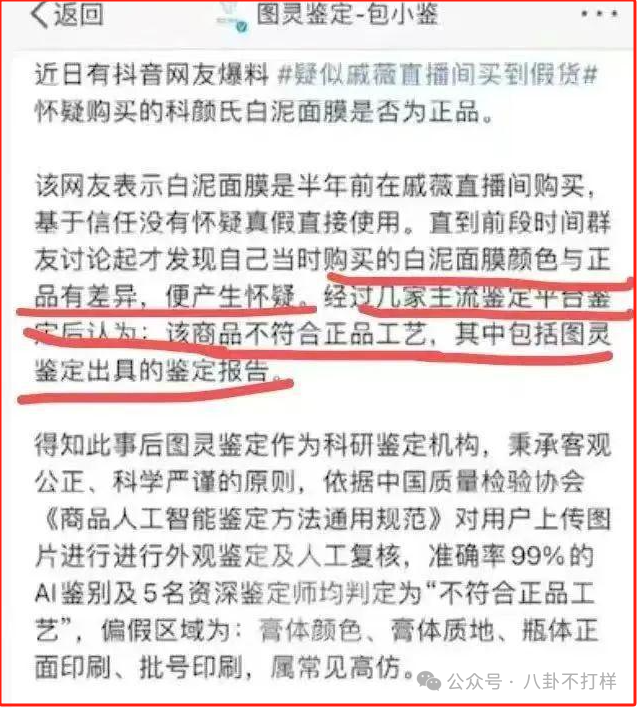可这些话,骗骗粉丝们也就罢了,这打脸的速度,就好比是卖的货。她一直强调自己不卖假货,说不能为了这点钱砸了自己招牌,结果被机构鉴定卖了假货。