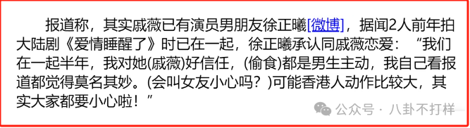 到了《神探狄仁杰》,戚薇和黄宗泽又被爆出两人因戏生情。就在这时,大半年没和戚薇互动的徐正溪,突然跳出来单方面承认恋情。但戚薇对这段恋情没有回应,只顾着和黄宗泽炒作。
