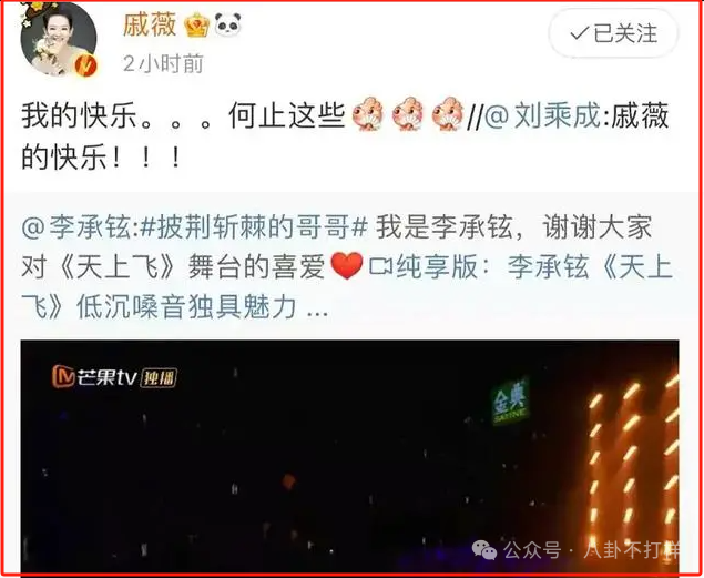 再例如,芒果跨年夜合作《狂恋》,喊着“真夫妻、性张力拉满”的口号,李承铉脸上还印着戚薇的唇印。