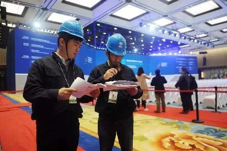 峰会开幕前,电力员工在会展中心进行用电安全检查。