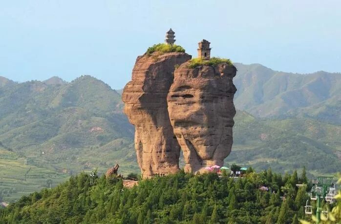 这是爱情诗歌的灯火阑珊处,而让爱情诗歌插上影视的翅膀飞翔万水千山,走进寻常百姓的文化生活之中,又让大家产生美妙联想的爱情电影的灯火阑珊处在哪里呢?从京城往北,与怀柔相邻,不过一百多公里,就可以来到弛名天下的避暑山庄的承德,便可以一览双塔仙境的神奇。在承德双滦区的青山翠谷之间,巅峰连绵之上,有两座高耸入云的双塔相依相偎,说不清有多少年的风雨相伴,数不尽有多少年的斗转星移,这两座塔峰始终不倒,形影不离,堪称典型而形象化的夫妻峰峦。于是,双塔山的美名,寓意永恒的爱情天长地久,亘古不变。