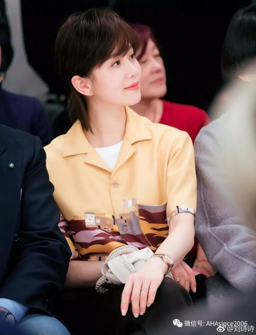之后刘诗诗把鬓角挽到了耳后