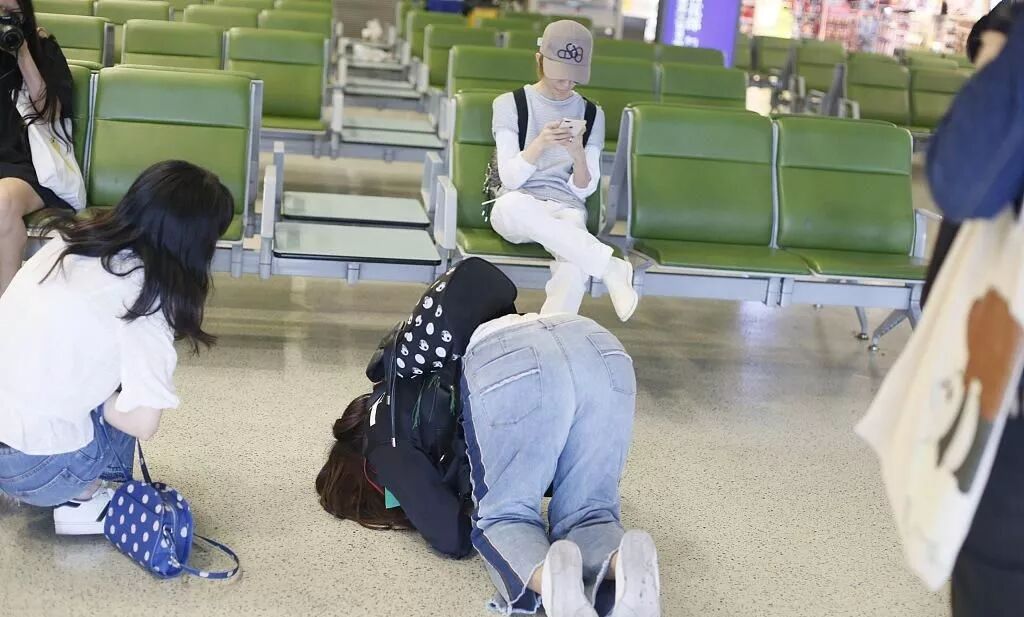 粉丝为了拍出一张爱豆的美照可以一直跪在地上,连头都快磕到地板上去,就是为了让镜头从下往上地拍郭敬明。大家都知道,从下往上拍会显得人身材高挑腿长一米八。