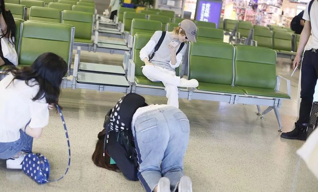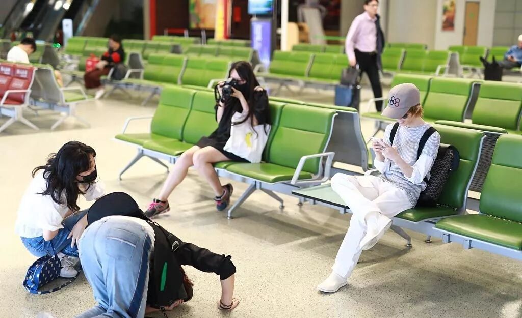可是,粉丝还是不肯放过郭敬明啊。有几个粉丝跟着郭敬明进了候机厅,架起单反相机,就开始对着郭敬明一顿猛拍。