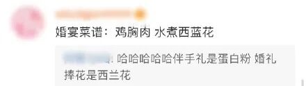 网友甚至调侃,陈伟霆何穗婚礼可能都要在健身房办,两人对着鸡胸肉起誓,无论贫穷还是富有,都不能背离健身房。