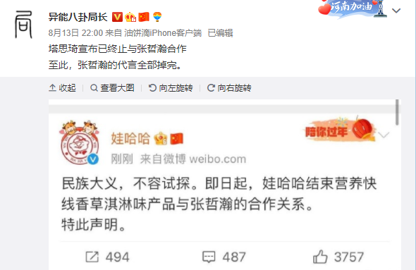 张哲瀚,凉了,因为不妥行为被各大媒体直接点名批评,