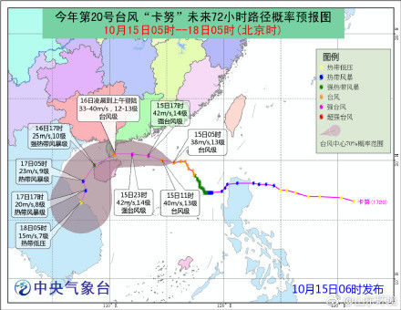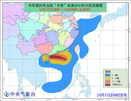 而受“卡努”和弱冷空气共同影响,15日~16日,南海中北部海域和海南岛四周海面风力较大,海南岛陆地将有一次强风雨过程。