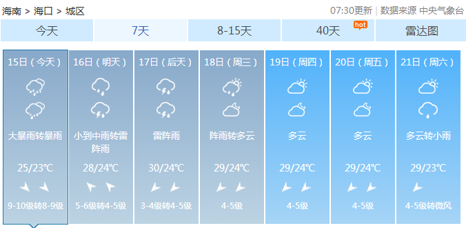 15号海口地区大暴雨转暴雨