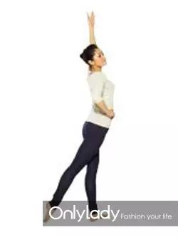 拉丁舞中常见的结束动作。单手高举过头,脸部和腰部则朝着反方向扭转。肩胛骨用力,背部挺直,和举起的手同一侧的腿作为支撑腿,脚跟朝外,另一条腿向后伸直,脚尖点地。左右交换各进行3组,每组5秒。
