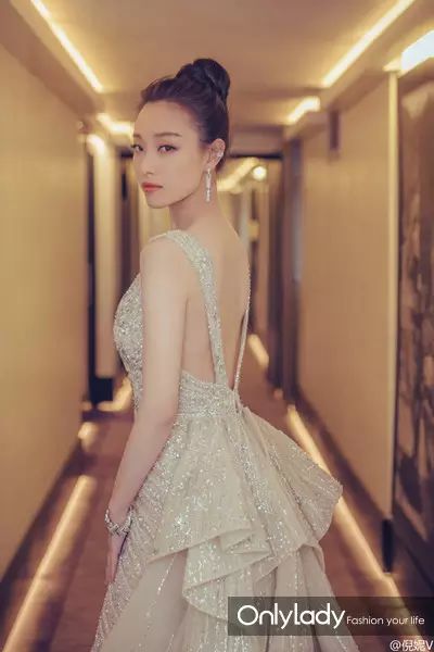 看多了虎背熊腰,来点倪妮的美背洗洗眼吧。这次倪妮身穿裸色亮片长礼服现