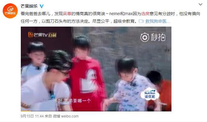 好多人都以为“女儿奴”吴尊会跟neinei站边,也有好多家长说,一般都会跟大的说要让小的,结果,吴尊却说三个人剪刀石头布,谁赢了就按谁选的来。