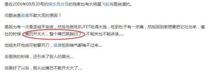 坊间甚至还有传说,吴尊曾经吃饭吃到下巴脱臼过!