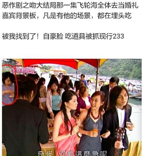 偶像剧《恶作剧之吻》,大结局的时候,飞轮海集体被拉到湘琴和直树的婚礼上去当人肉背景板,虽然飞轮海的镜头很少,但有吴尊的镜头,他都在吃。