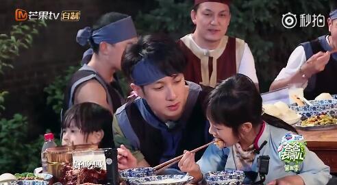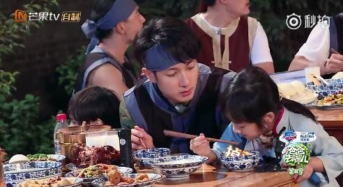 忙活了一整天,又是地道探险寻物,又是拿起算盘典当的,再挑食的小朋友,面对节目组准备的丰盛晚餐都变得狼吞虎咽。
