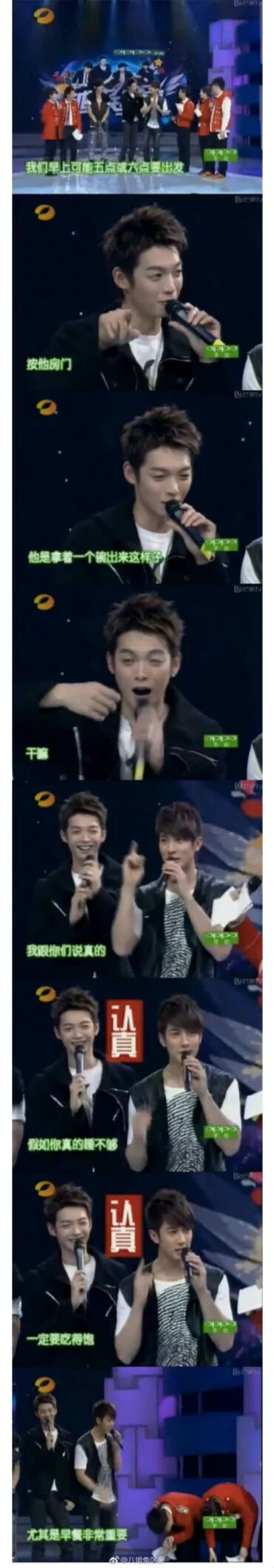 辰亦儒算是飞轮海当中,吴尊最铁的兄弟了吧,辰亦儒说,有一次大家因为工作,马上就要出发了,他去房间找吴尊,开房门就看见吴尊拿着一个碗在猛吃。