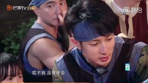 这时,吴尊爸爸终于忍不住了,说:“咬不到,没有牙齿”,