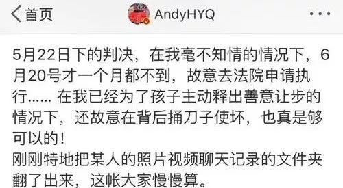 在女儿还不到2岁时,两人离婚并且为了争取女儿的抚养权打官司,之后黄毅清因为不满法院判决,怪罪黄奕背后捣鬼,扬言:“这笔帐慢慢算!”