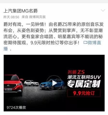“ZS” 是上汽旗下 MG 品牌推出的名爵 ZS,主打「年轻人标配的首款互联网 SUV」。同时,2月14日名爵 ZS预售发布会在上海成功举行,名爵借节日推广这一生意机会顺势抓住大众的眼球,相信其在正式上市之后一定会取得不错的成绩。