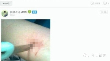 此事被媒体披露后,舆论是压倒性地骂EXO粉丝脑残,并且按照EXO粉丝的说法,“把这种仇恨蔓延到EXO身上”,于是,骇人听闻的一幕在EXO百度贴吧发生了,在某个帖子下,有EXO粉丝威胁“你们再黑EXO,我就去死”,并且附上了一张小刀已经插进臂弯的图片。