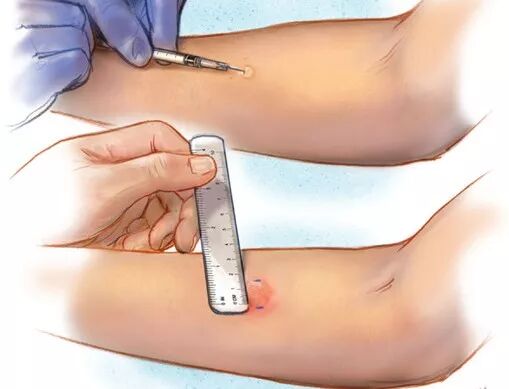 用调配好的肉毒素针在前臂内侧做皮试,打一个皮丘,过15分钟后观察有没有反应,如果是一个小白点或微红属于正常情况,如果直径超过1cm的红斑和肿块,则说明对肉毒素过敏,不能注射。