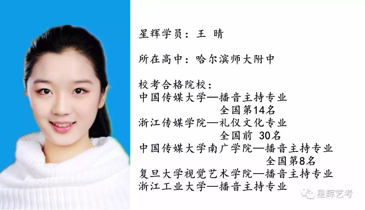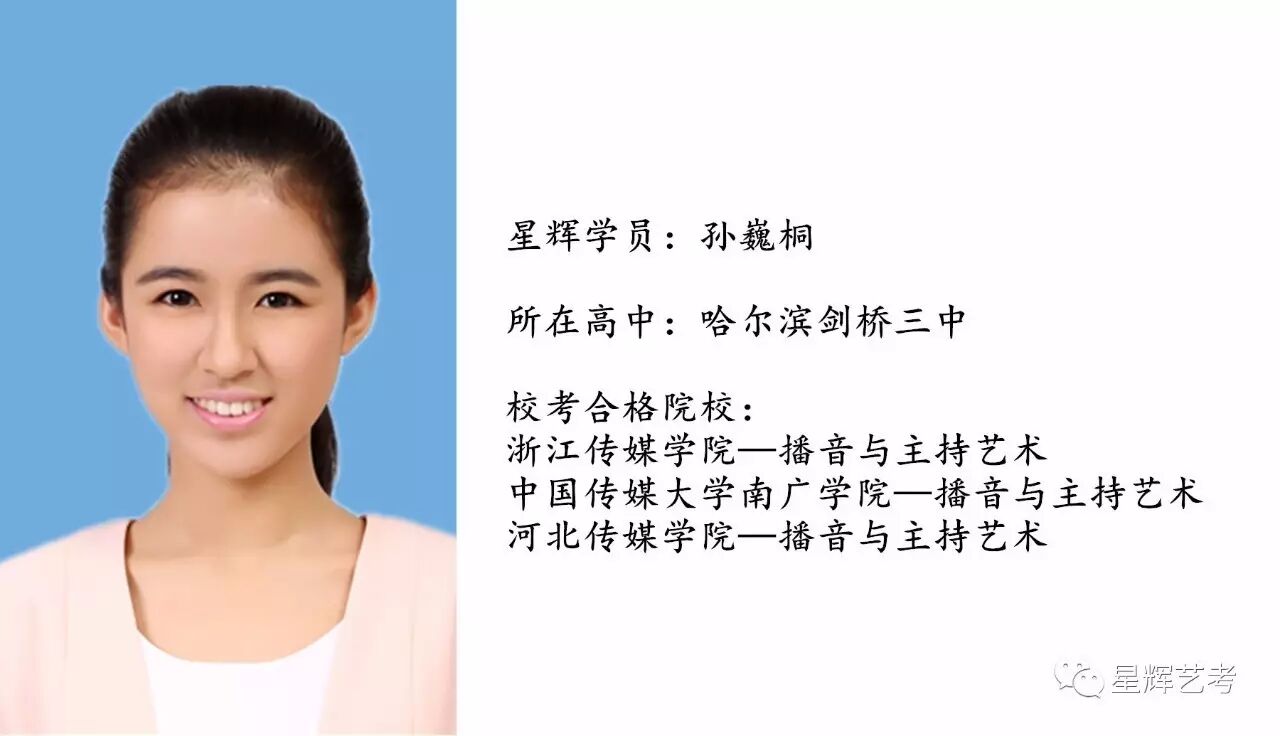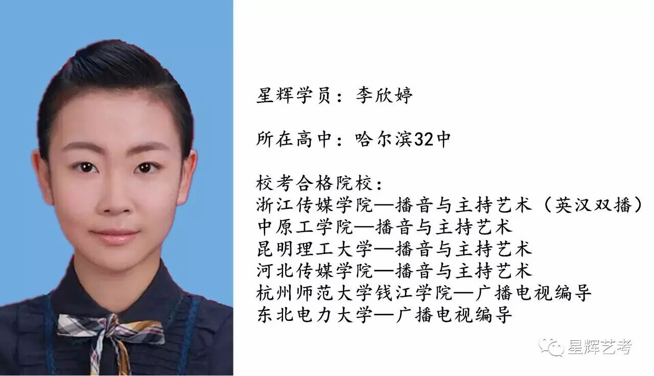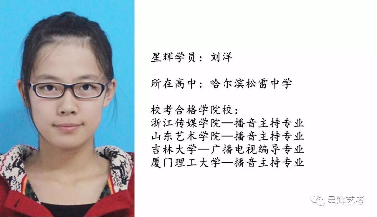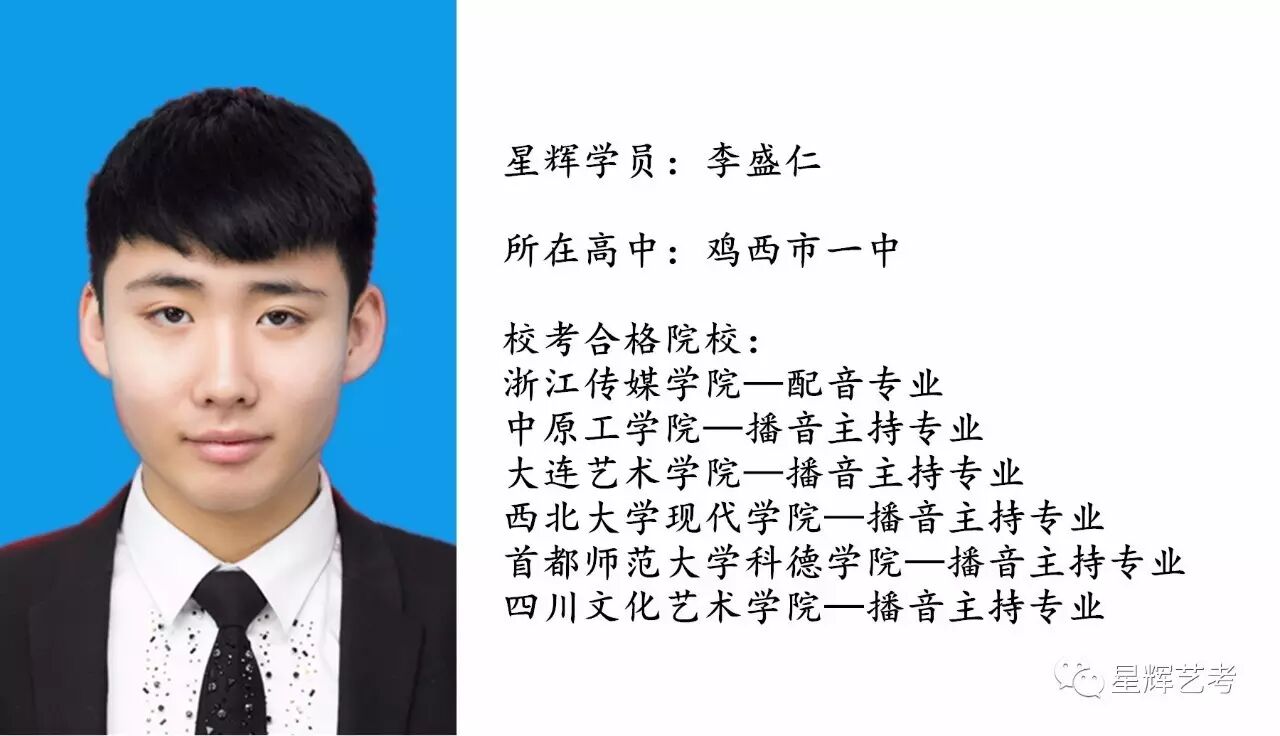 李艾晶,哈尔滨德强中学;生安泽,海林林业一中(表演专业全省第一);申晴,牡丹江第二高级中学(表演专业全省第六);