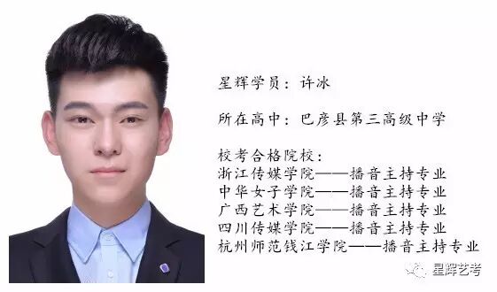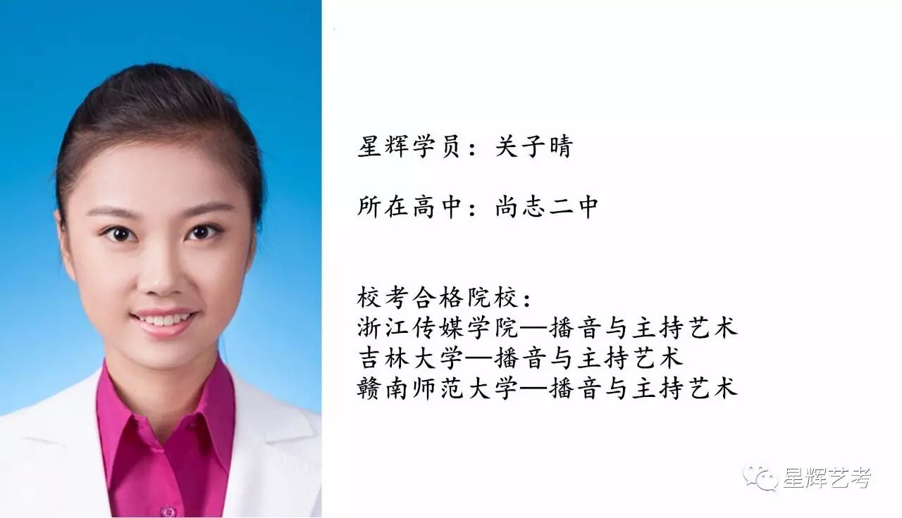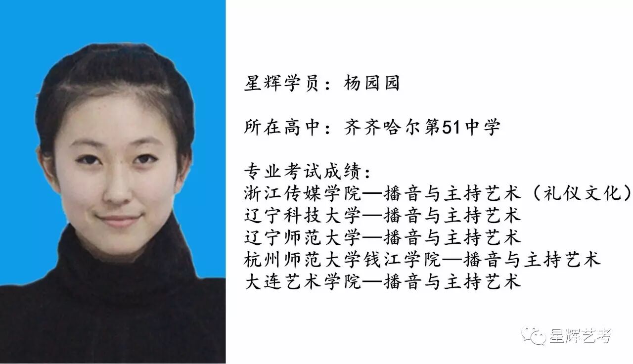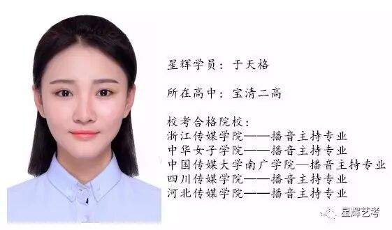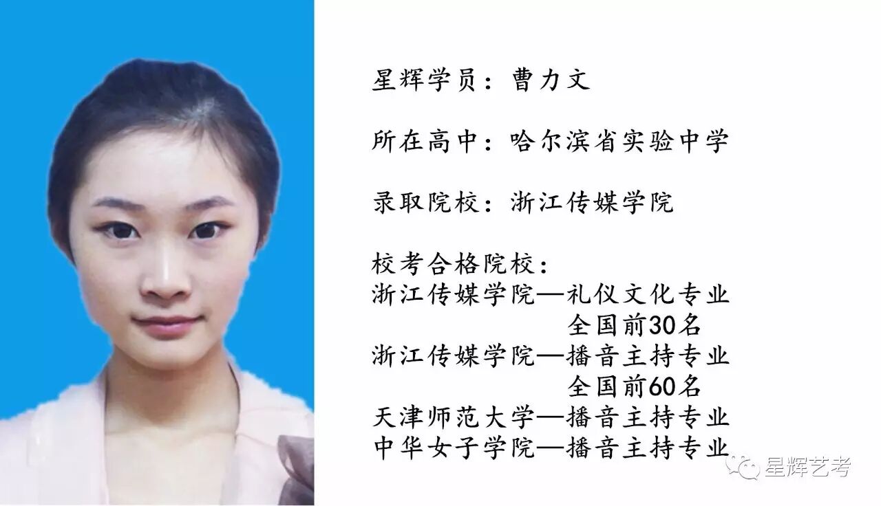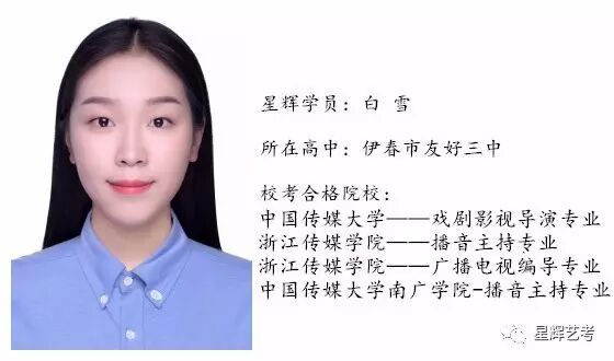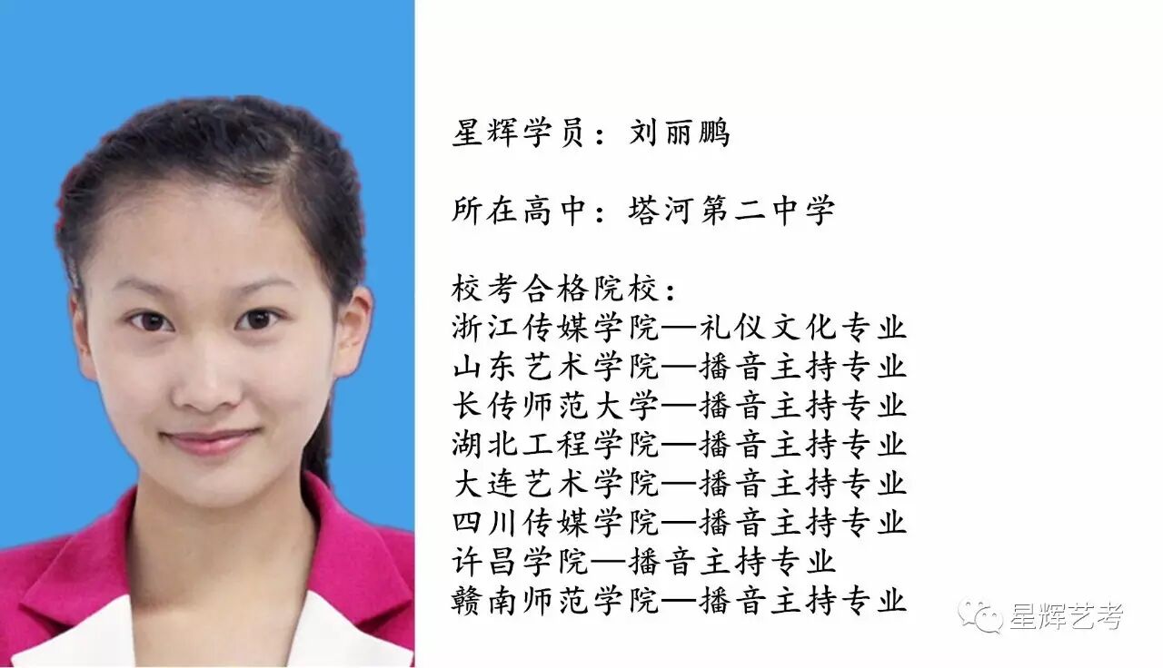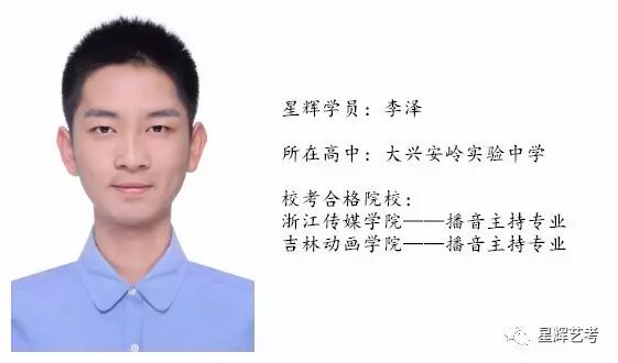 李艾晶,哈尔滨德强中学;生安泽,海林林业一中(表演专业全省第一);申晴,牡丹江第二高级中学(表演专业全省第六);