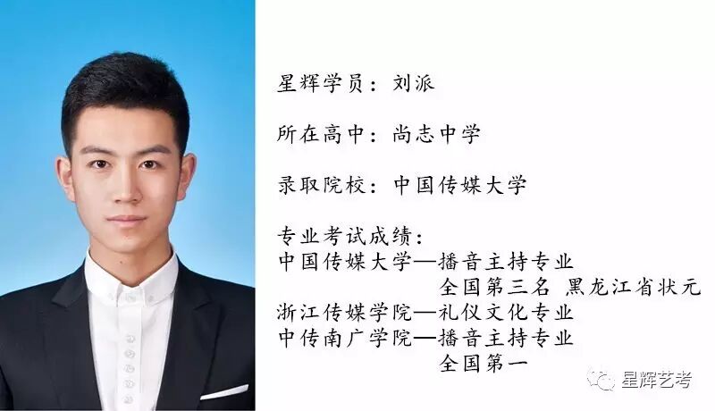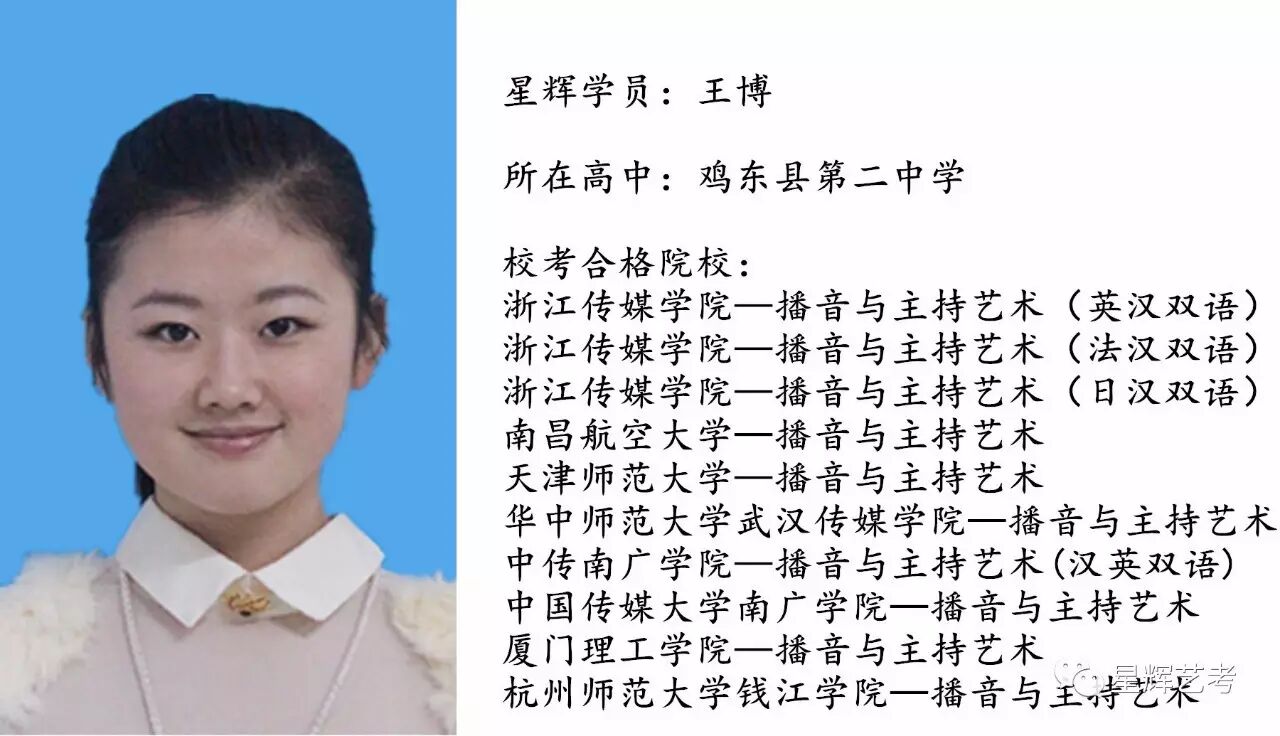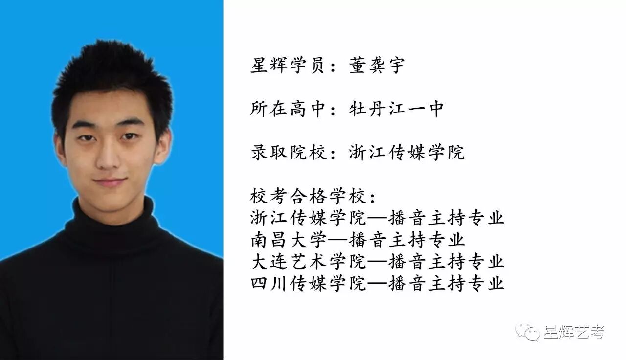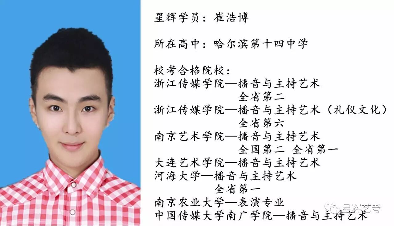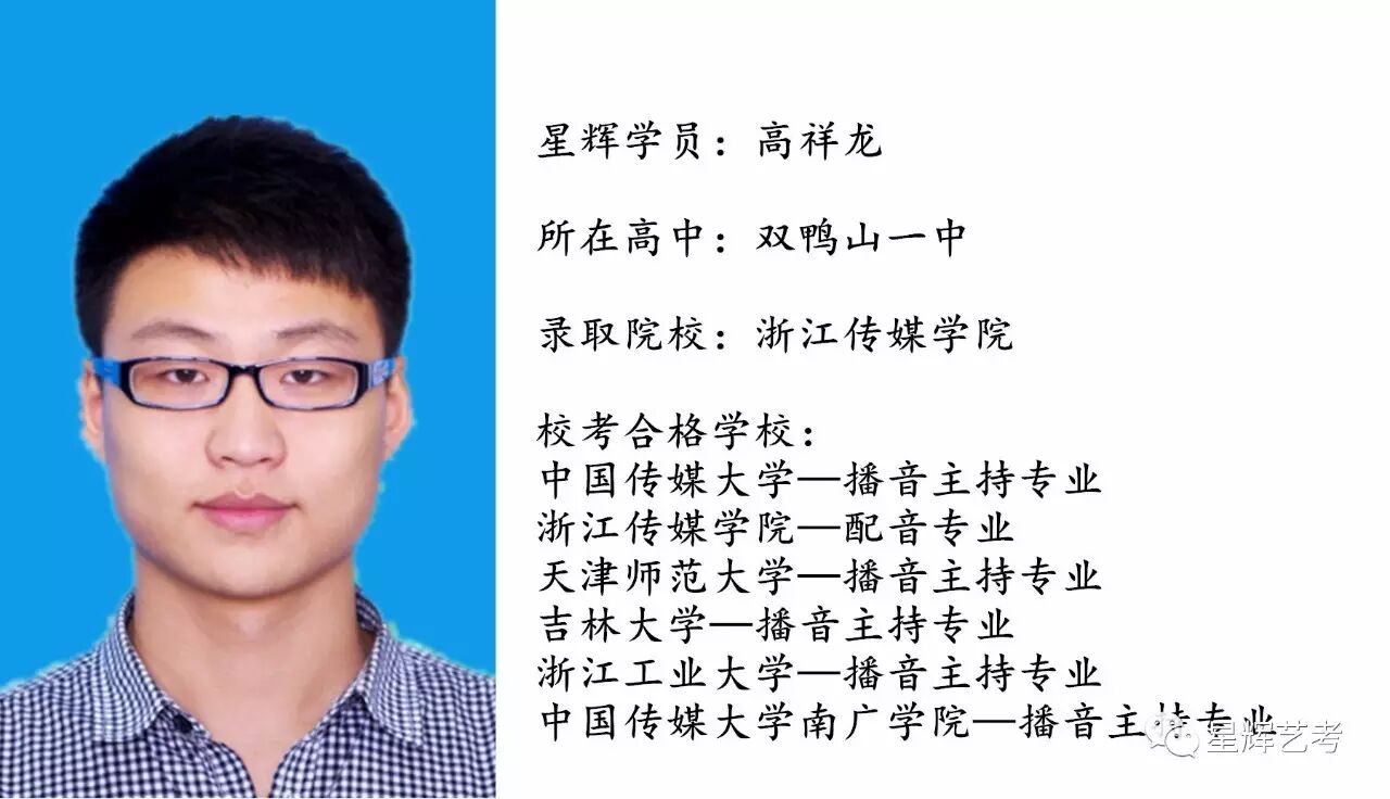 崔猛,双鸭山一中(播音主持专业全省第五);张琦,建三江一中(播音主持专业全省第五名);戴超奇,鸡西一中(表演专业全省第一名);张尉,翠峦一中;刘依凡,佳木斯十一中;魏灵,鹤岗一中;程禹硕,大兴安岭实验中学;刘畅,长春第二中学;刘浩楠,鸡西市第一中学;房彦君,鹤岗一中;宋涛,加格达奇实验高中;刘思岐,鸡西市一中