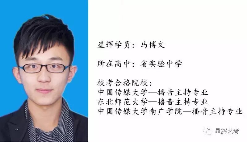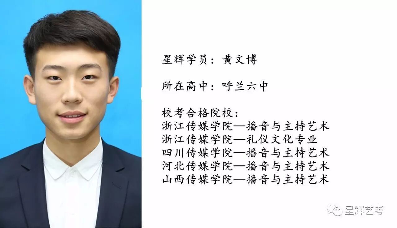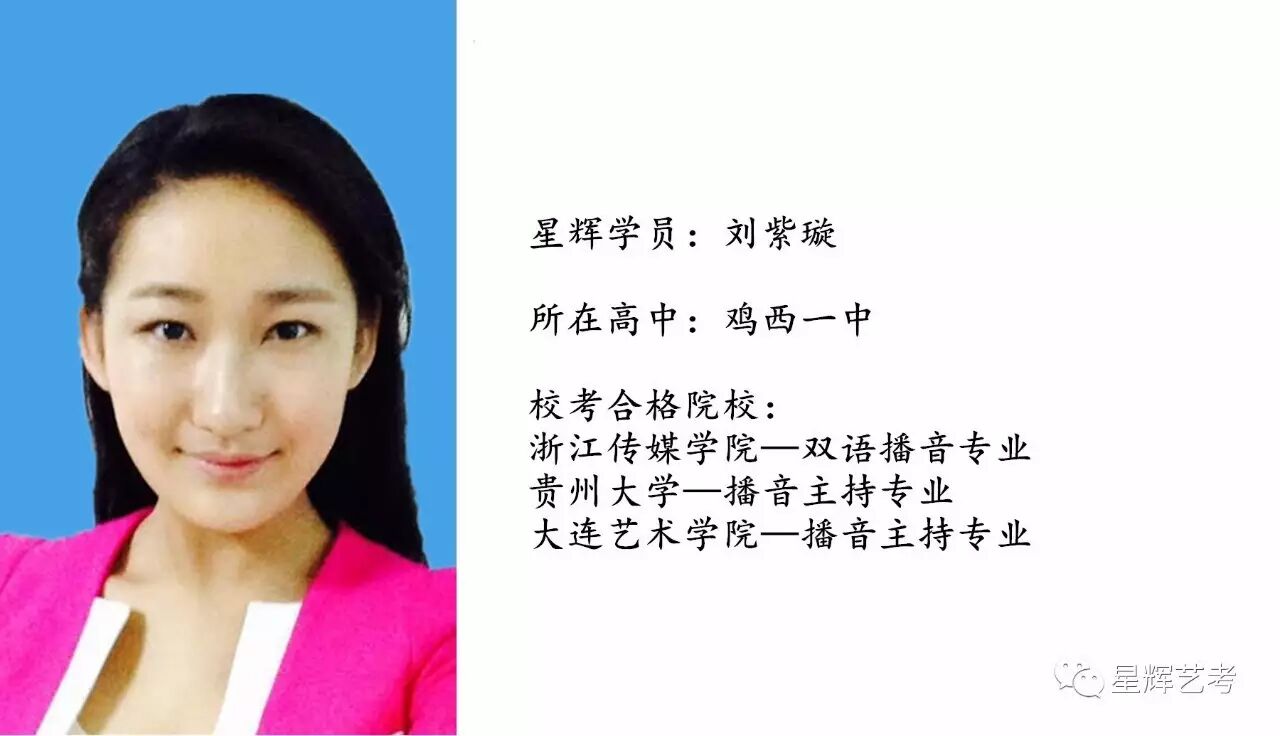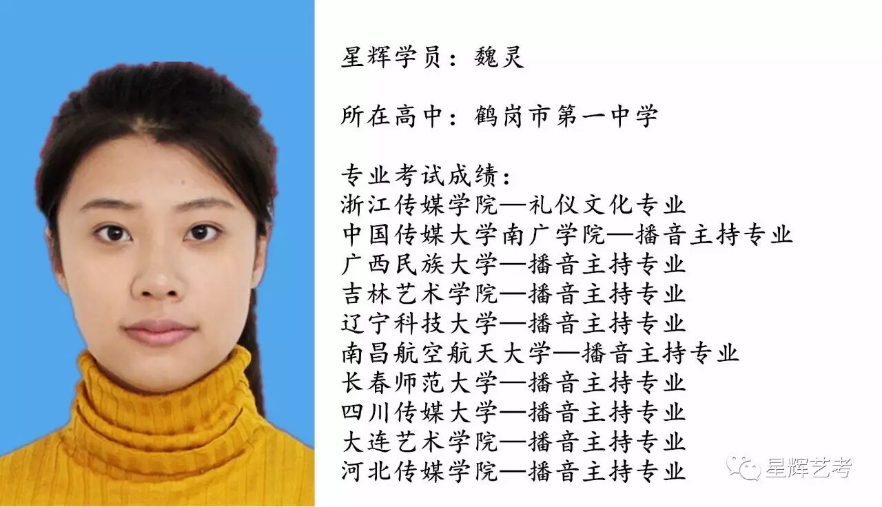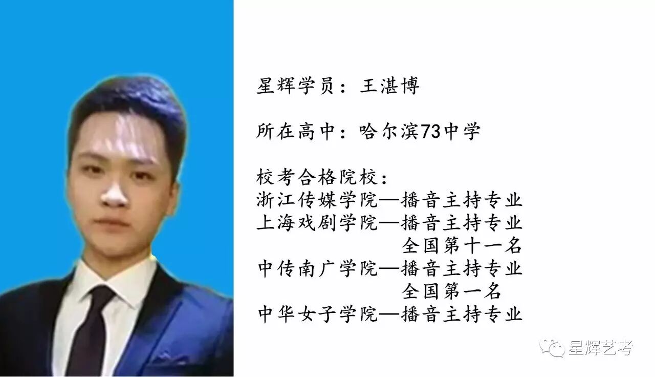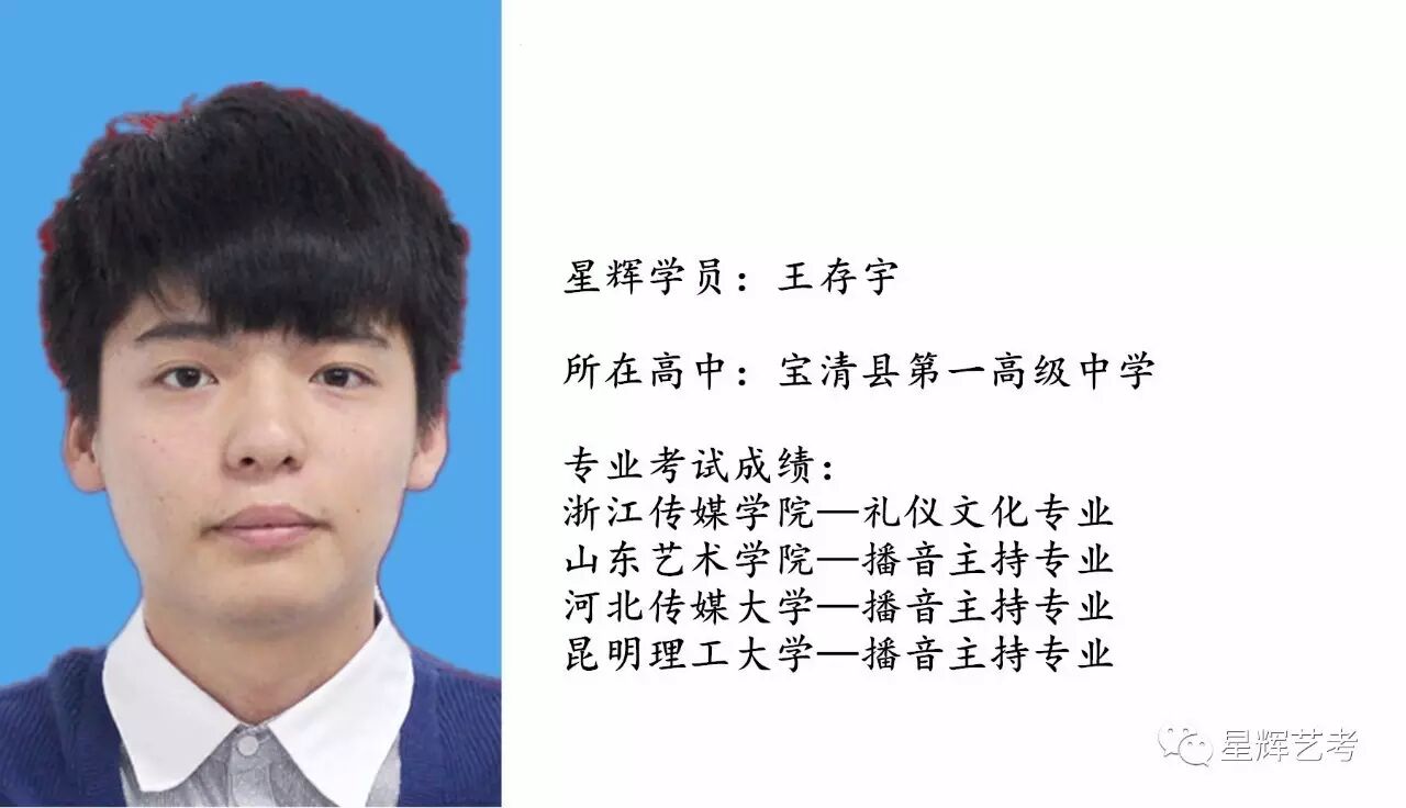崔猛,双鸭山一中(播音主持专业全省第五);张琦,建三江一中(播音主持专业全省第五名);戴超奇,鸡西一中(表演专业全省第一名);张尉,翠峦一中;刘依凡,佳木斯十一中;魏灵,鹤岗一中;程禹硕,大兴安岭实验中学;刘畅,长春第二中学;刘浩楠,鸡西市第一中学;房彦君,鹤岗一中;宋涛,加格达奇实验高中;刘思岐,鸡西市一中