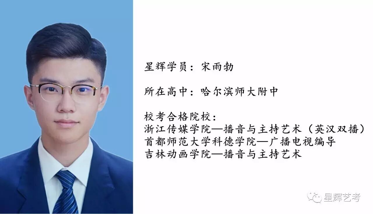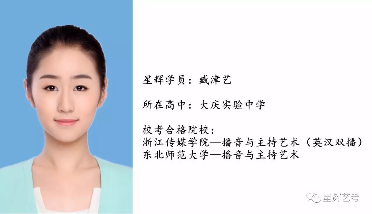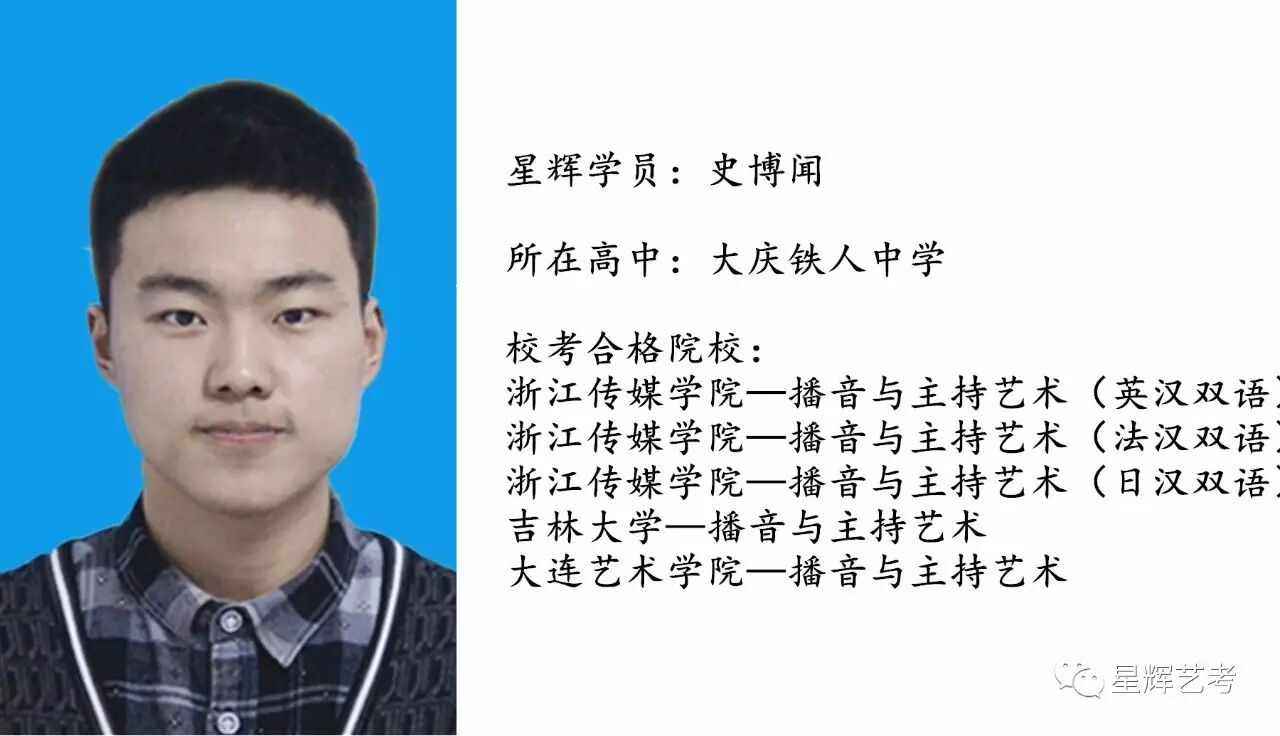 高李鑫(编导)(吉林省洮南第一中学)、臧津艺,大庆实验中学;裴振先,绥化一中;单思宇,庆安一中(播音主持专业全国第三名);刘派,尚志中学;王楠,伊春一中(全省第七);马博文,省实验中学;李宣函,肇东一中;宫兵,大庆石油中学考生;马佳巍,伊春一中