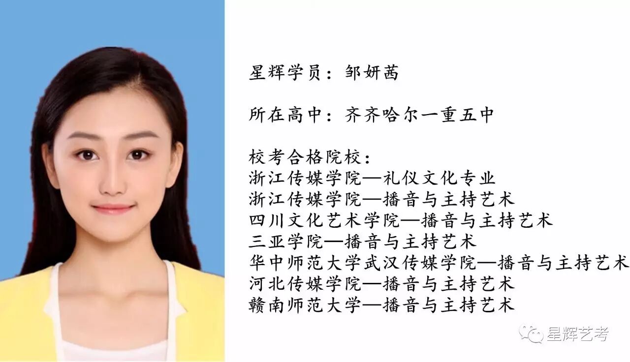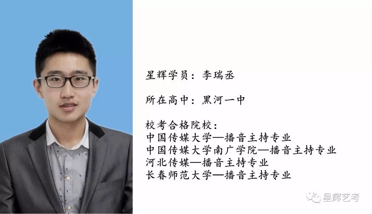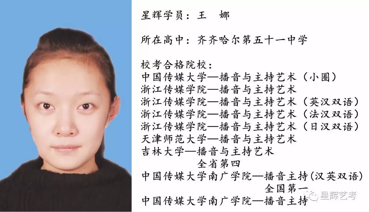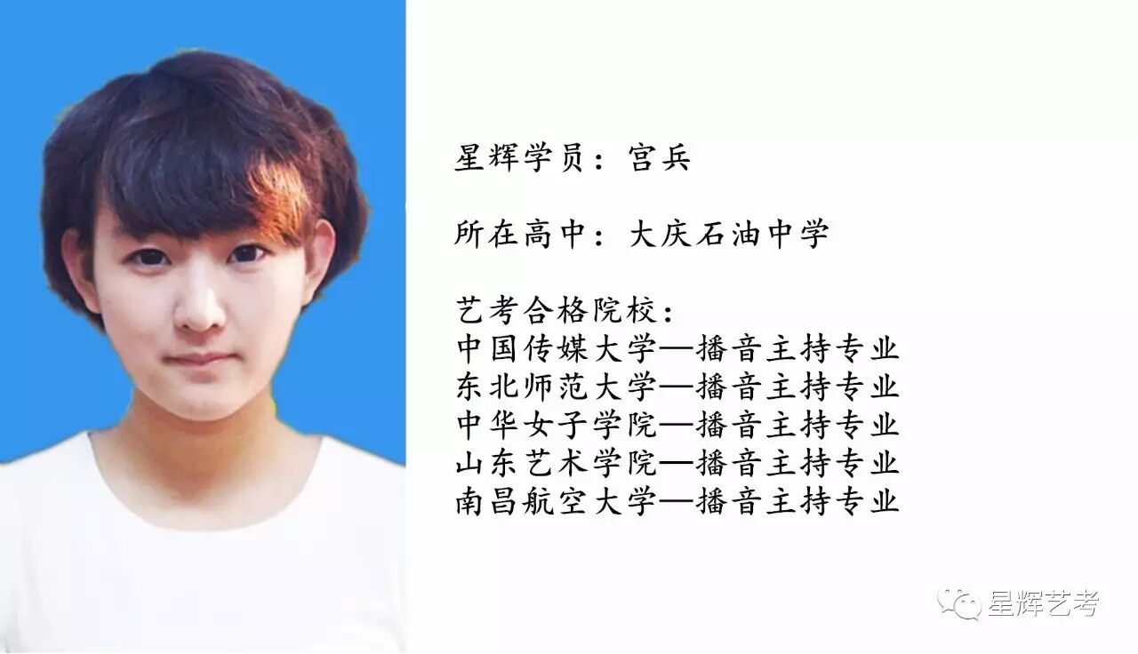 高李鑫(编导)(吉林省洮南第一中学)、臧津艺,大庆实验中学;裴振先,绥化一中;单思宇,庆安一中(播音主持专业全国第三名);刘派,尚志中学;王楠,伊春一中(全省第七);马博文,省实验中学;李宣函,肇东一中;宫兵,大庆石油中学考生;马佳巍,伊春一中
