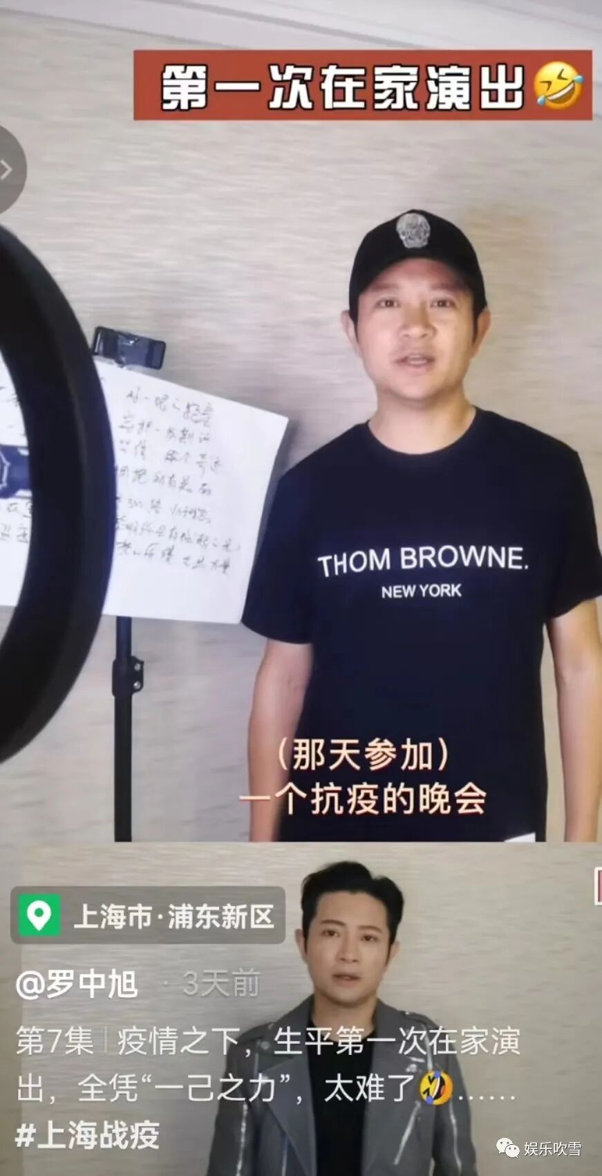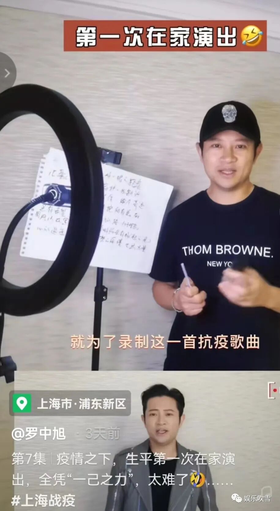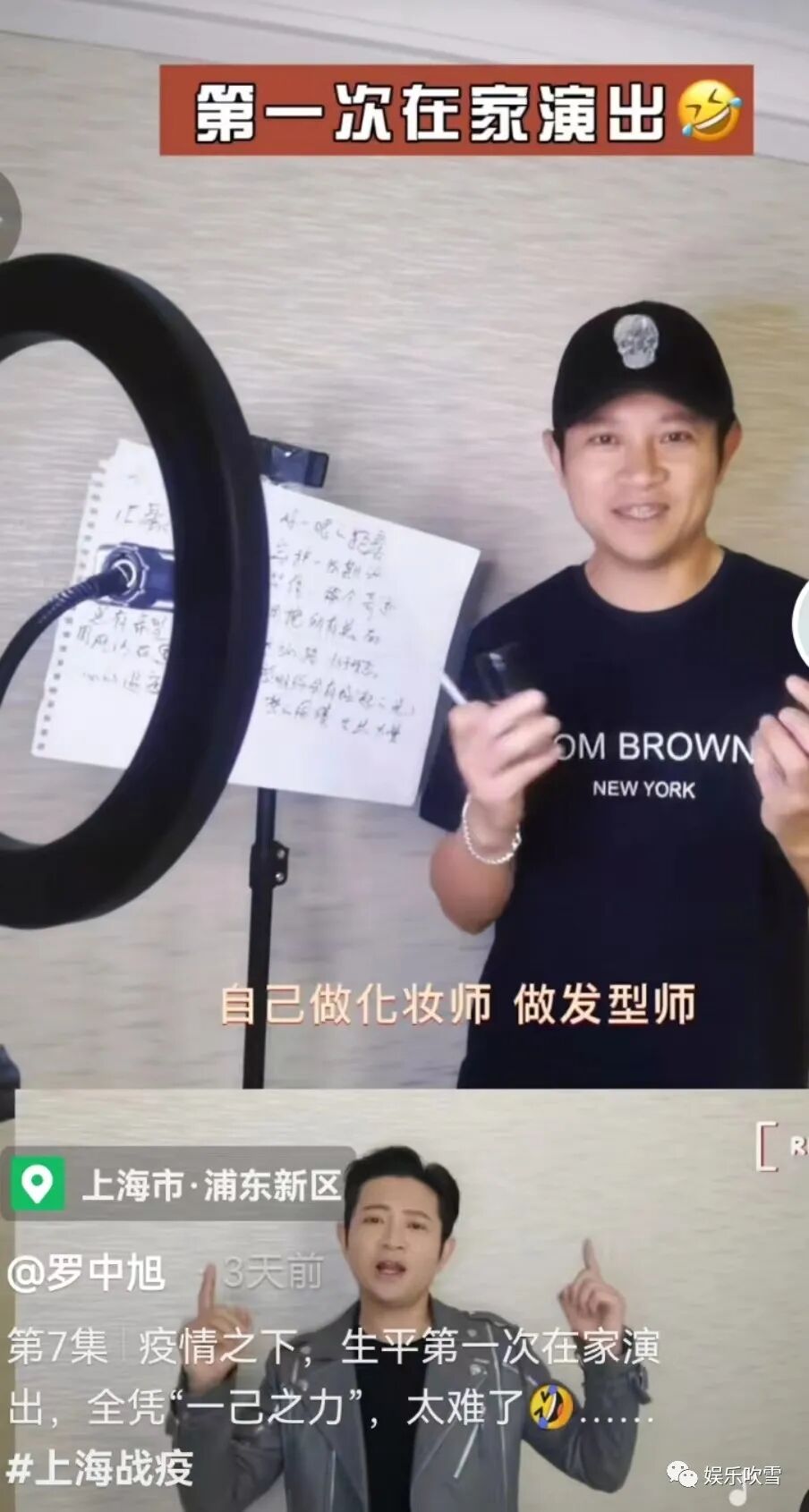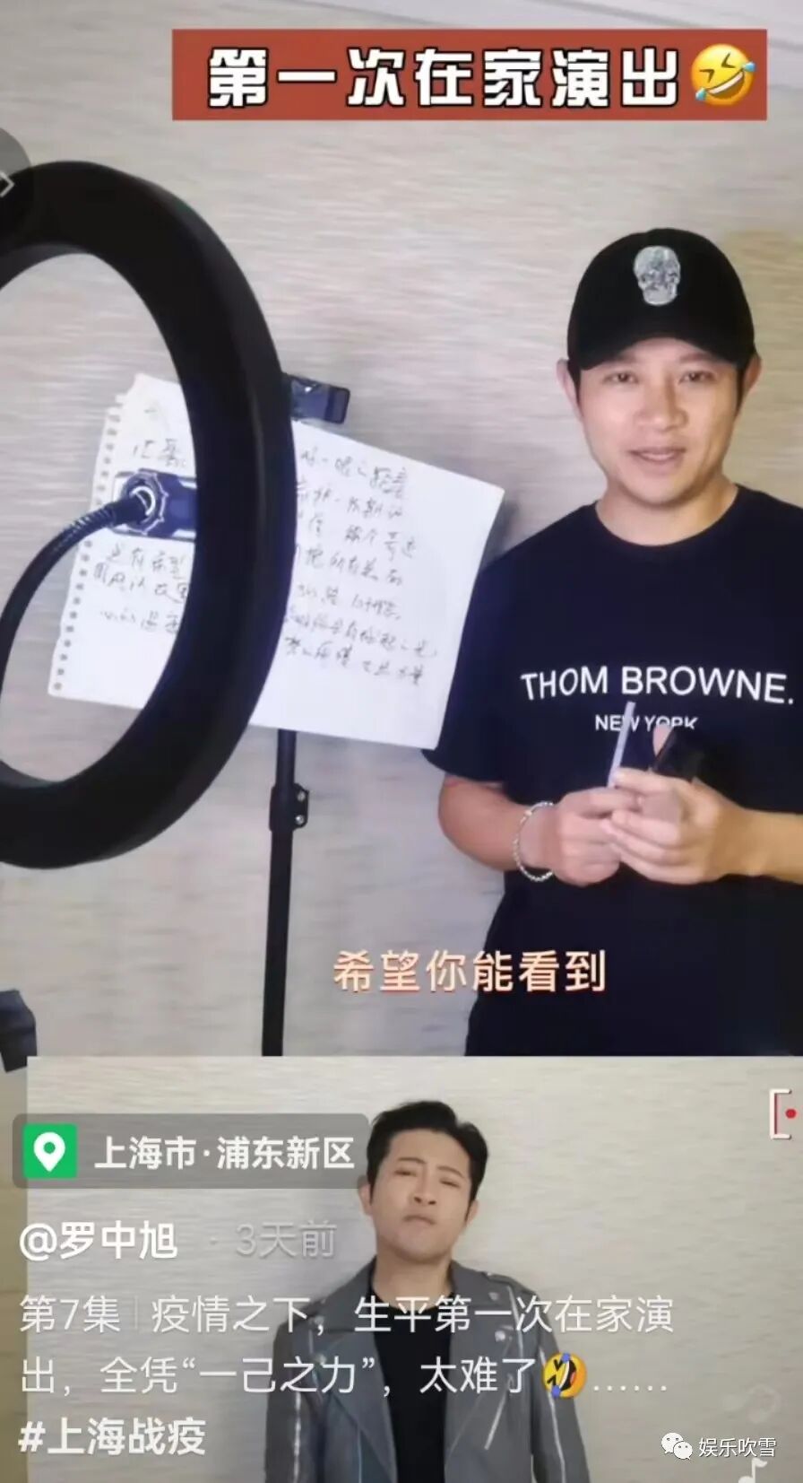 还配文表示:“疫情之下,生平第一次在家演出,全凭“一己之力”,更是直言太难了!