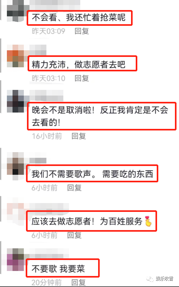也有网友表示没心思看他唱歌看这种晚会,忙着抢菜呢!