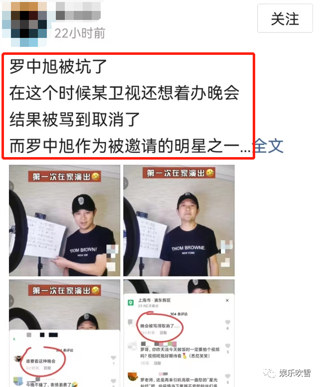 而且罗中旭在视频中也表示这次是参加一个抗疫的晚会,网友们也在评论区吐槽这个晚会已经被骂得取消了!