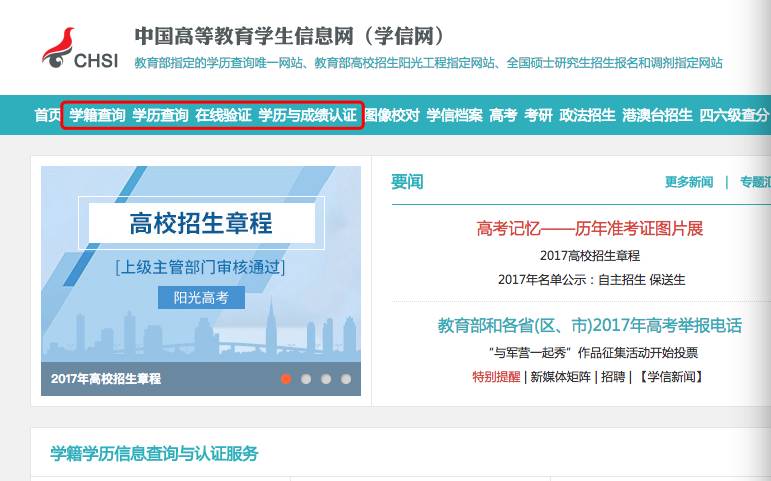 此外,还有“教育部指定的学历查询唯一网站、教育部高校招生阳光工程指定网站、全国硕士研究生招生报名和调剂指定网站”——学信网。