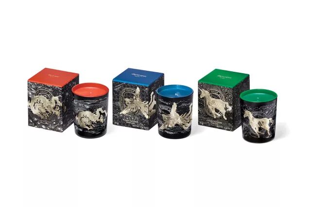 这个秋冬,Diptyque和巴黎知名艺术家 Philippe Baudelocque合作针对圣诞季推出新款香氛蜡烛套装。艺术家运用了星座、彗星、光环等元素,创作出三款神兽主题香氛。三款神兽主题分别是独角兽、凤凰和天龙,对应的香味是林香、果香以及肉桂香。此外还有配套的旋转蜡烛罩和淡香精套装。