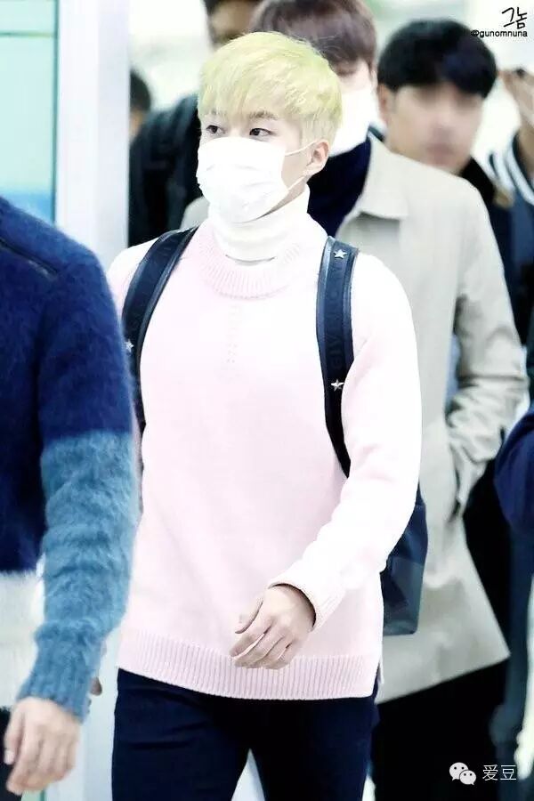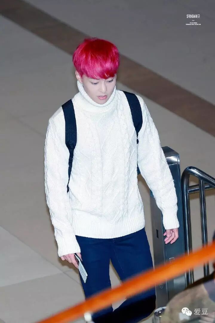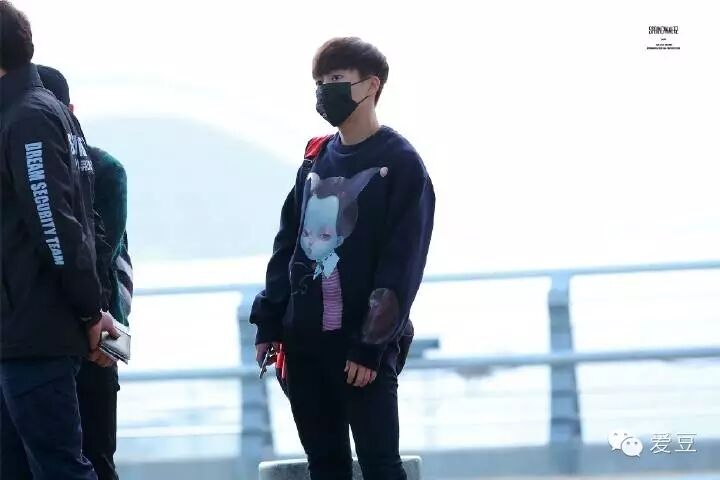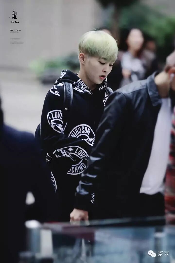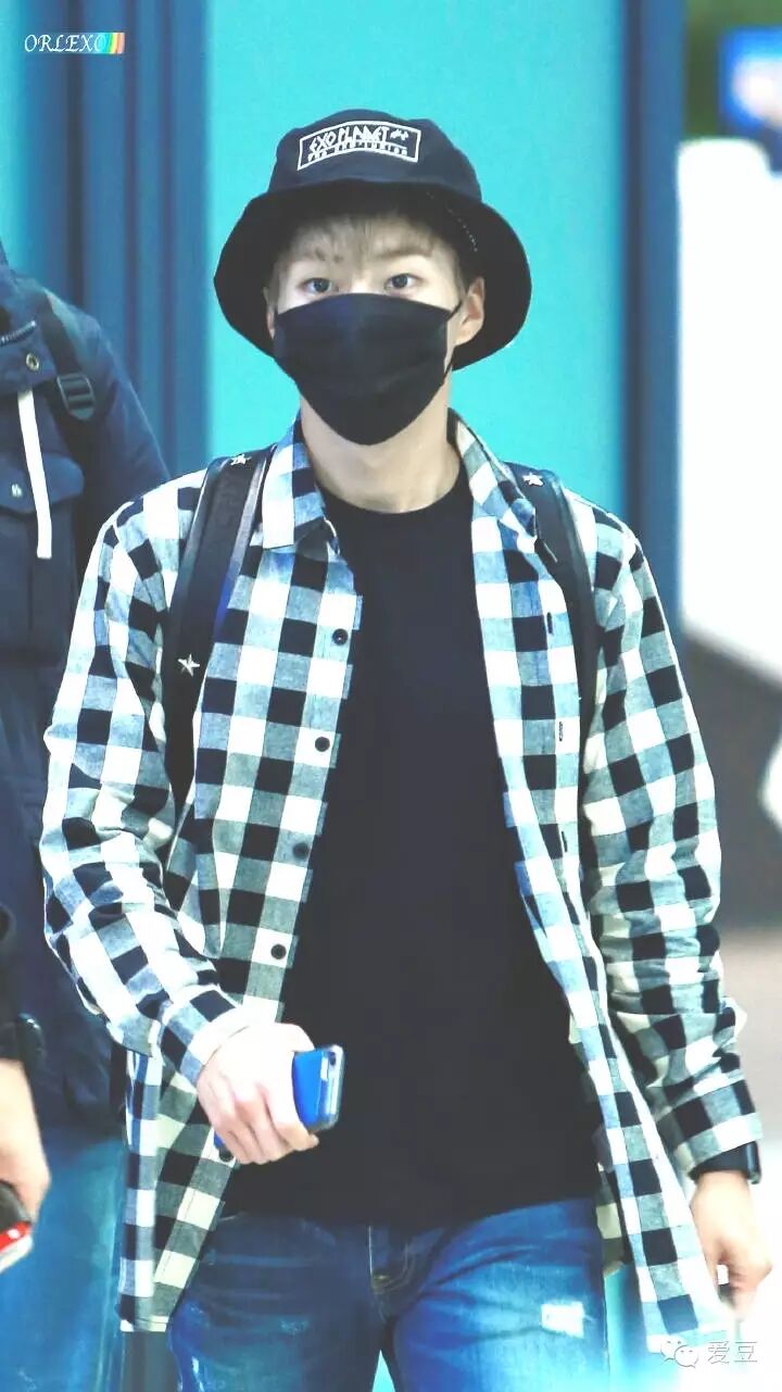 拼接撞色还有夸张印花的T恤还有连帽卫衣棒球服,xiumin用深色紧身下装或者破洞牛仔裤进行混搭,完美消化街头风的机场look~