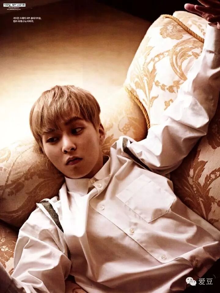 卡其色衬衫十分适合xiumin,复古的珉锡少爷,演绎英伦风尚。