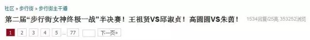 所谓“步行街女神”,就是由虎扑体育论坛的直男们发起的一场美女选举比赛。去年,32名亚洲资深女神以全民投票形式决出“第一届步行街女神四强”——高圆圆、林志玲、贾静雯、张梓琳。