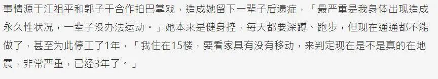 江祖平还爆料,当时不光打了她,另外一个女演员也被郭子乾打了一巴掌。