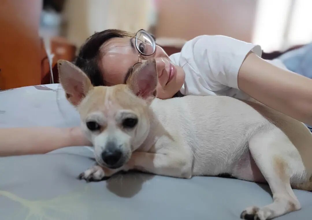 看她偶尔晒出的动态,生活中除了身边的狗,
