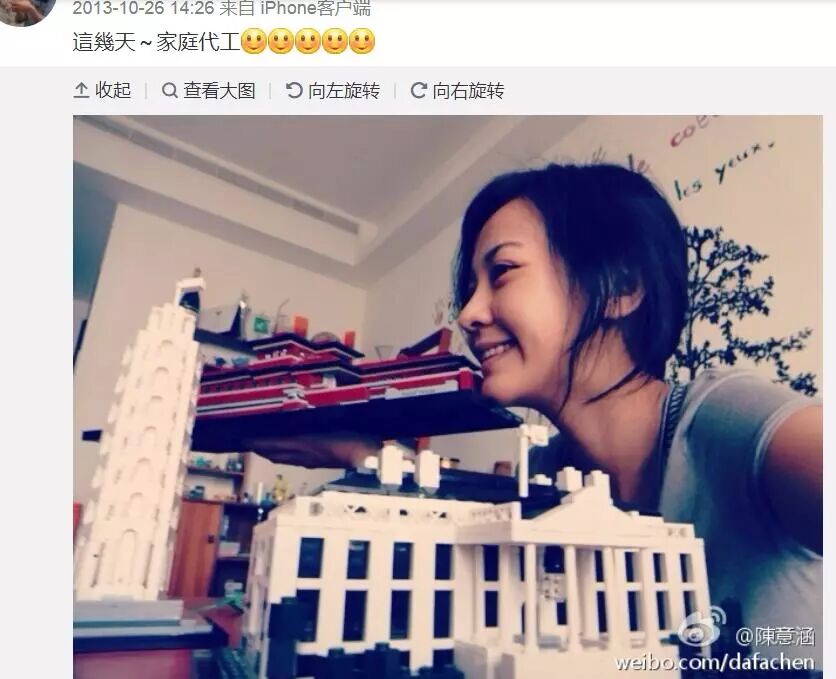 一直很有自己生活态度的陈意涵也是专业乐高®迷。每日除了跑步做运动活得朝气满满之外,玩乐高®也是她生活日常。微博上光是晒乐高®积木拼图都晒了好几年,而且玩的难度都是一年比一年大。